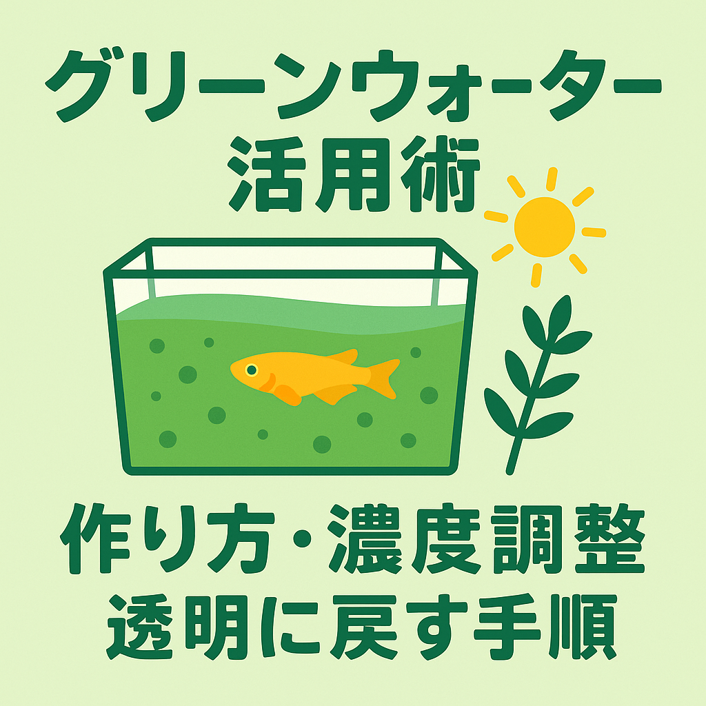 飼育方法 グリーンウォーターの作り方と使い方|濃度調整・透明水への戻し方まで メダカのグリーンウォーター活用。作り方、濃度の見極め、薄め方、透明水への戻し方を解説。稚魚の歩留まりを上げる使い分けも紹介。 2025.09.09 飼育方法